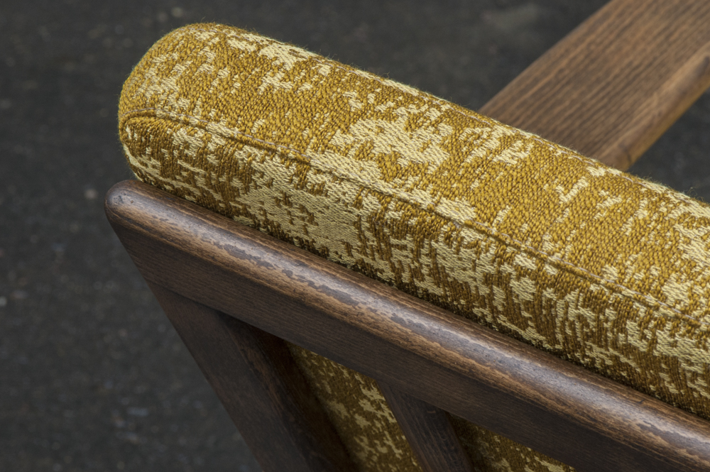 Minkštasuolis. Iš 1964 m. suprojektuotos E. Jurgelionio modulinių baldų serijos visuomeninėms erdvėms. Lakoniškas, grakštus, vėl šiuolaikiškai atrodantis baldas. Galima trisėdė arba dvisėdė su staliuku versijos. Nuotrauka pavyzdinio baldo, galima rinktis audinį pagal poreikius.